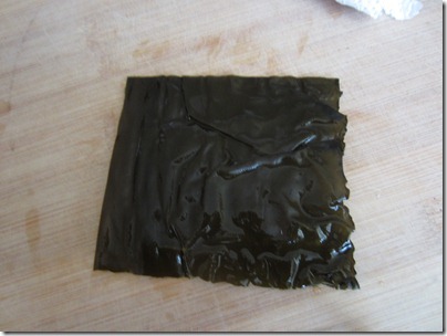 The kombu was purchased from a Korean market, and the sheets of seaweed were huge! Only need two four inch pieces for this application, so some handy scissors will trim those out.